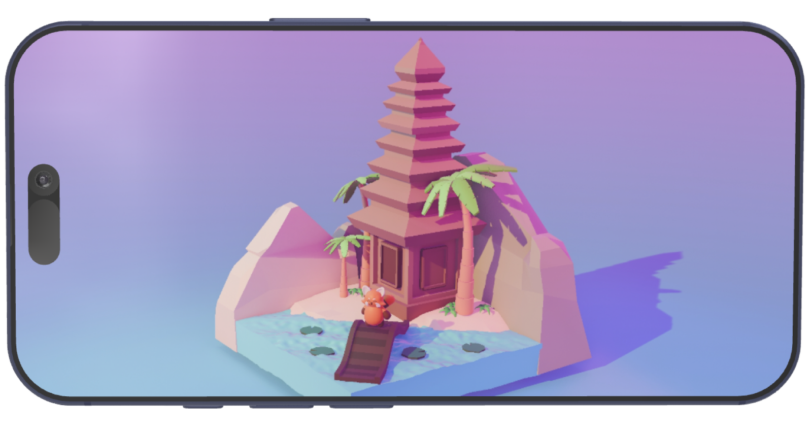 This 3D design project features a low-poly diorama inspired by Indonesian cultural elements. The centerpiece is a traditional temple surrounded by natural elements like water, rocks, and palm trees, creating a serene atmosphere. Alongside the diorama, the project includes a 3D model of a red panda character, which is thoughtfully designed with detailed sketches and multiple perspectives. The intergration of the red panda adds a playful and whimsical touch, complementing the cultural and natural theme. This artwork
